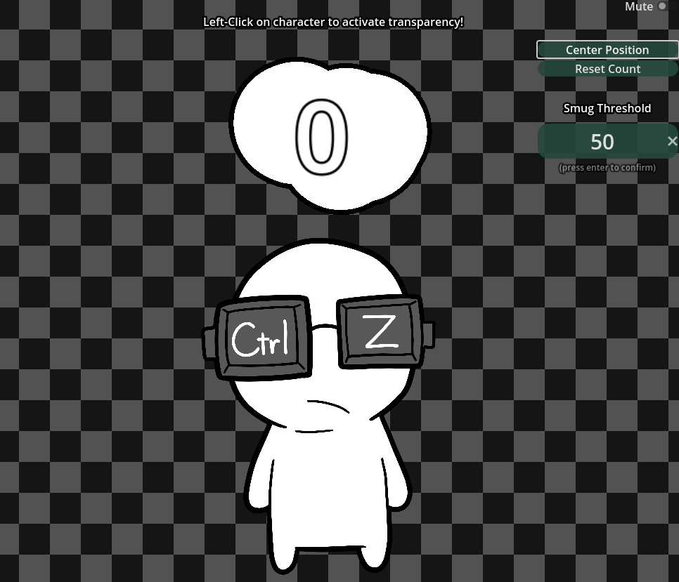 - Be able to reset the undo count, set the smugness threshold (the amount of undoes that causes Undobert to smirk), and mute Undobert’s sounds.